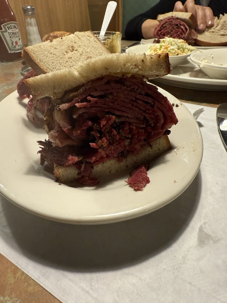 Delicious food. Old time deli atmosphere. While not cheap, its about half the price of Katzs.