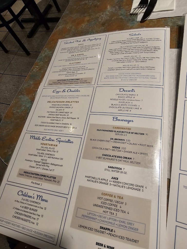 Great Jewish deli, very tasty but there are some real problems that need fixing.... the wait for sit down service is long and punitive at best and their prices are unrealistically outrageous. Went there with family and got three sandwiches, three cans of soda, and shared one order of potato pancakes and the bill was over $125!!!!! Honestly that meal was the first time Ive been in my whole life I left the Bronx feeling robbed.