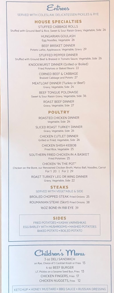I have been eating at Liebmans for most of my life. I have find memories of eating with my dad after school and a quick dinner with my mom. Was sad to see mothers bakery close. The food has not changed much and I am grateful for that. I enjoy the knishes and the potato latkes.