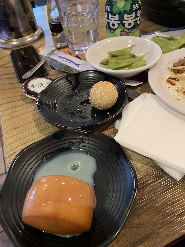 The service could be better. We would order food, and not all of it would come. Wed have to order again or tell the waitress directly who barely understood English and French. She would still forget. Besides that the food was very good, we ate a lot and we were satisfied. I will say that if you order the pumpkin salad youll get something that looks like a ball of ice cream that tastes like sweet potatoes. It was still very good. The place wasnt full, so we were lucky to have a spot knowing it was Valentines Day. In terms of atmosphere, it was nice. What made it better was the diversity of K-pop songs they had playing.