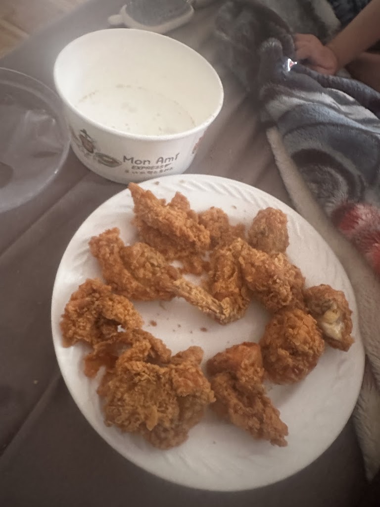 It tasted good, but the large pieces of fried chicken were undercooked and bloody. I am worried about the children who ate it.