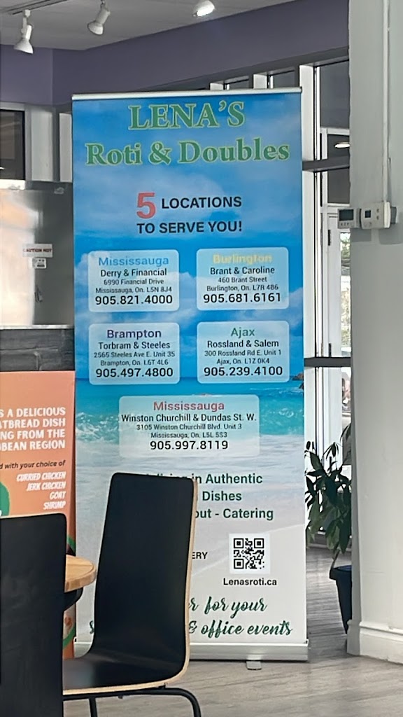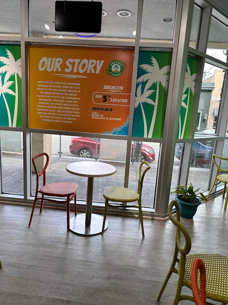 Noticed Lenas during a visit downtown and had to stop in. The smell was amazing. What a treat! Amazing rotis (goat and chicken) and cant wait to go back. Please open up in Dundas. If I lived in Burlington I would be a regular. If youre eating burgers and fries, or frozen fried foods from chain restaurants AND you have this place, youre missing out on the good life. Wheelchair accessibility: There is a ramp.