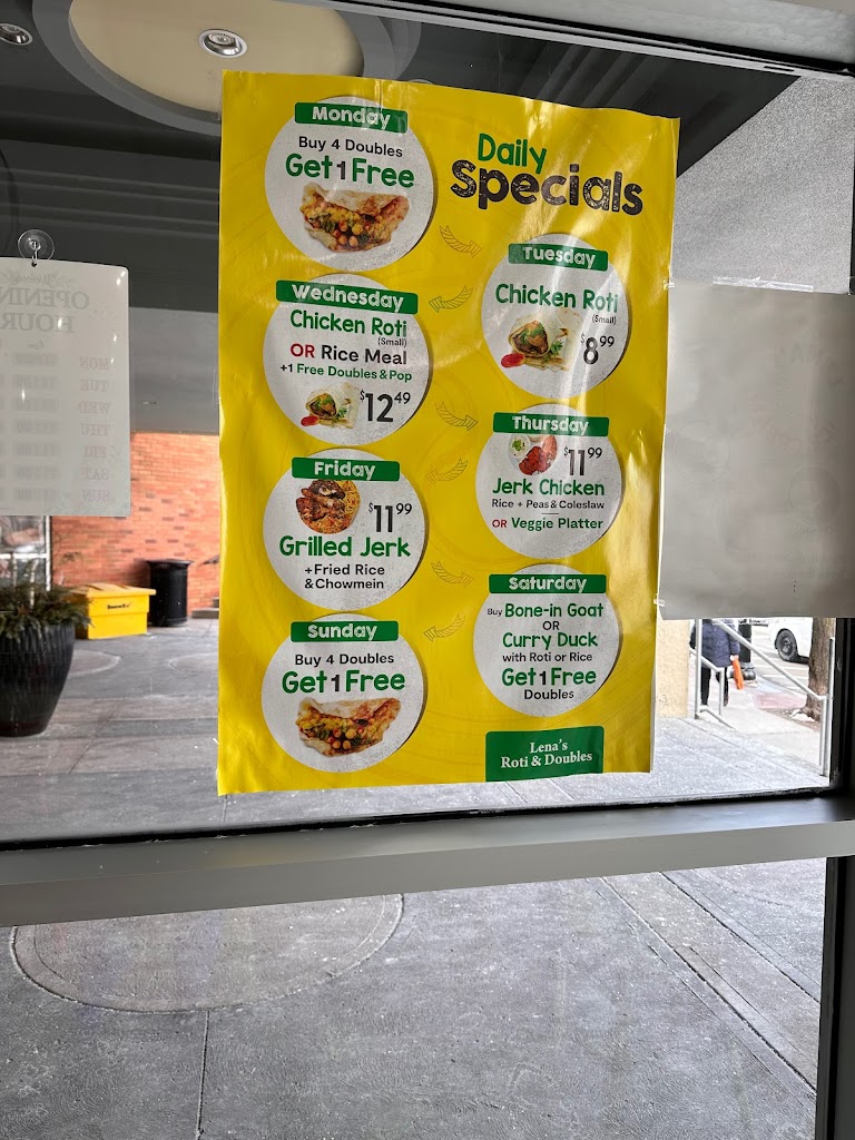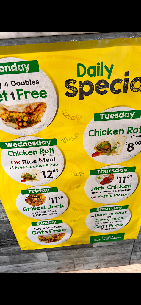 I recently had the pleasure of dining at Lenas Roti and Doubles, and I must say, it was an unforgettable experience! The moment I walked in, I was greeted with the warm aroma of freshly baked roti and the friendly smile of the staff. The menu offered a wide variety of traditional Caribbean dishes, and I opted for the curry chicken roti, curry duck with dhall and rice, and of course 2 doubles, which did not disappoint. The roti was soft and flaky, and the curry chicken was tender and full of flavour. The atmosphere was cozy and intimate, with vibrant colors and lively music that added to the Caribbean ambiance. The service was top-notch, with friendly and attentive staff who ensured that our glasses were always full and our plates were never empty. Overall, I highly recommend Lenas Roti to anyone looking for a delicious and authentic Caribbean dining experience. Cant wait to go back and try more of their amazing dishes!