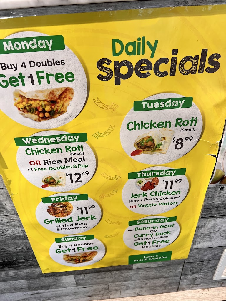 Update - Thanksgiving October Special. Buy 2 doubles get 1 free. Prepare yourself (yuhself) for one of the most authentic experience for Trinbagonian Street Food outside the twin islands. This was undoubtedly one of the best doubles I have had in Canada so far and is the BESSSST (bess doubles). Now the pics I have shared are because doubles dont get enough talk time. Further the stainless steel box with warmers and sauces was a class act to see your food made infront of you as it is on the streets in Trinidad. The location was clean well kept and neatly tucked in Burlington. I cannot wait for a Hamilton location to come fast enough. Lena's has 5 current locations across the GTA and I believe one of thr best deployments of a franchise to get the Trini scene recognised without a hyperfocused central location is PEEL region. Awesome job Lena's team and great service on this Carnival Tuesday 2024.