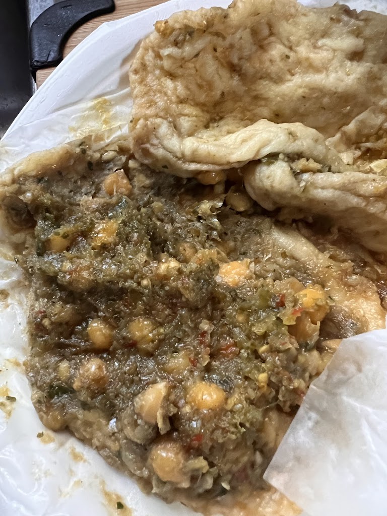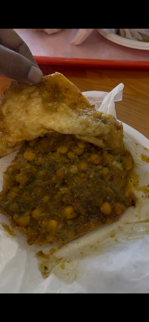 Tried the channa and potato roti, which was delicious, and the spices were bomb. It was just messy to eat, they should provide cutlery with it.