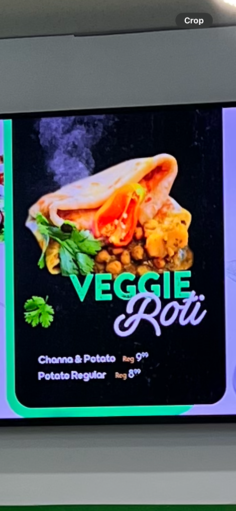Amazing veggie roti with channa and potatoes! The spice was flavourful and portion considerable related to the price. Definitely returning!