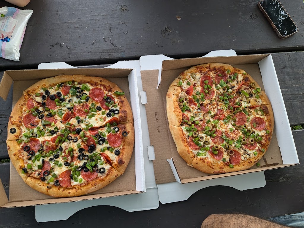 Very juicy and tasty pizza. Especially enjoyed eating it on the shore of the lake