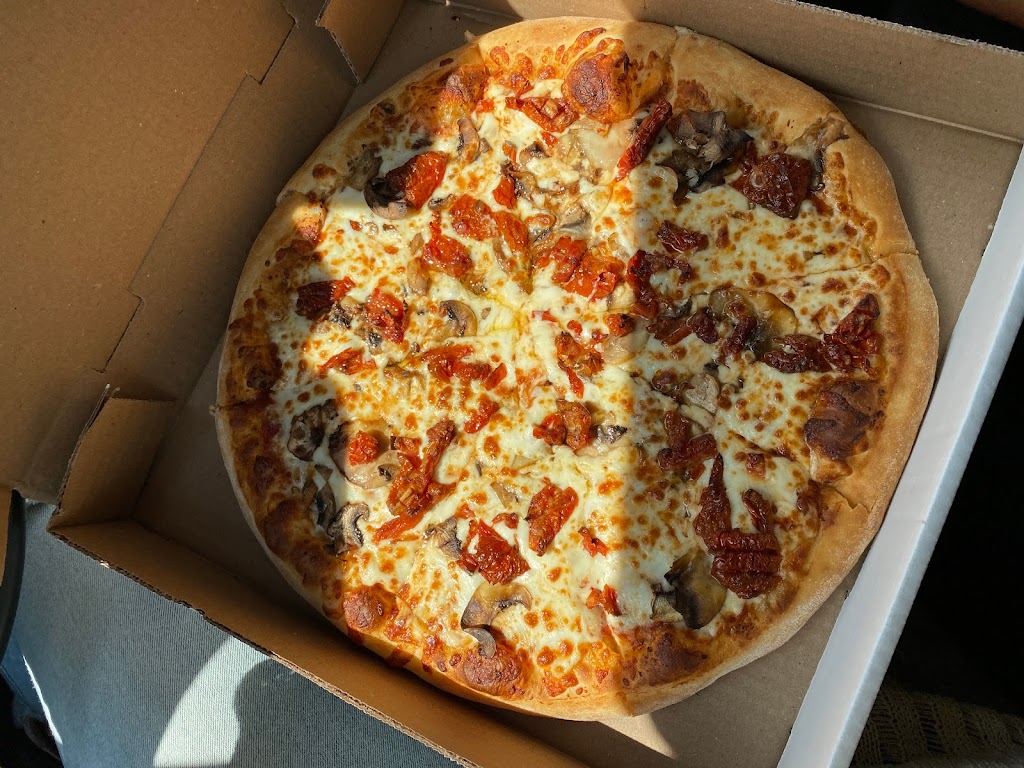 Super delicious!!! We got 2 smalls with extra cheese, with sundries tomatoes and mushrooms. The dough itself is great quality, doughy, airy and crispy! The pizza was super cheesy, not too heavy on the tomato sauce and crispy on the bottom. Would definitely recommend trying this if you are in the area.