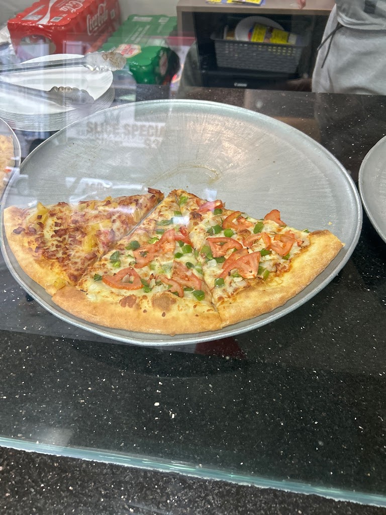No complaints from me! Its a great place to go when you want hot pizza on a cold day and dont want to spend a lot! Good budget pizza! I havent seen prices like this since pre-pandemic. One filling slice was not even 4 dollars! I chose all the meats pizza and hubby got Hawaiian. I wish there was more meat on the hawaiian but no complains from me! The price is unbeatable. Service was good. Owner was friendly and fast. Pizza was hot. They had things on the side you could add so i added tons of parmesan cheese on both. If im ever in this neck of the woods and want a fast cheap hot slice of pizza, id go here again.