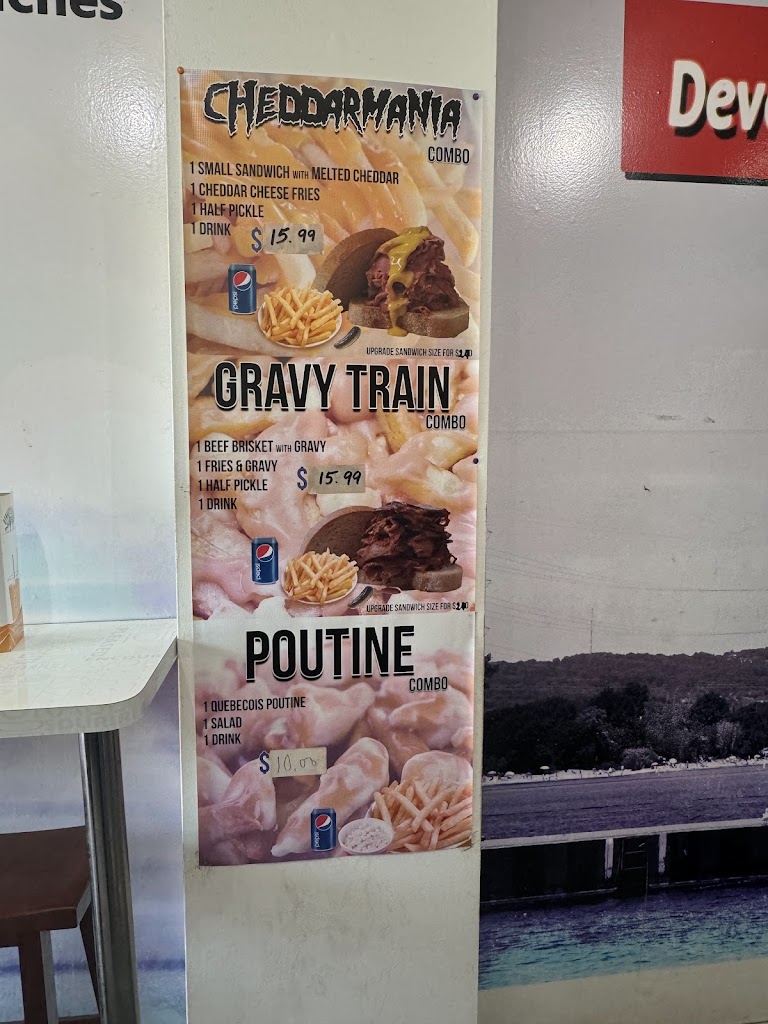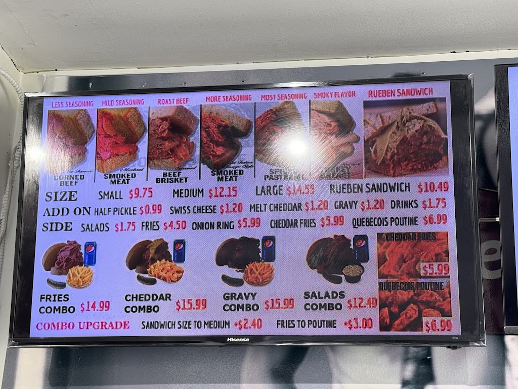 Just ordered 2 Montreal smoked meat sandwiches. Both of us were very happy with the results. Heaping amount of meat for medium size. Counter service extremely courteous.