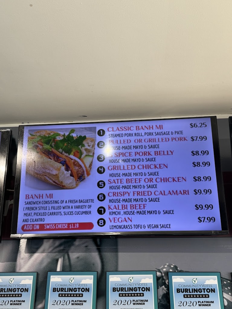 Truly one of Burlingtons hidden gems. The Bahn mi is fantastic, and the owners are so lovely. Great little take out place, but theres also some seating to devour your sandwich right away. Its also so affordable!!! I dont know how the Subway nearby can stay in business when this place is 20 seconds away and a million times better. Highly recommend the grilled pork or the spicy pork belly, but they also have vegan and non-pork options.
