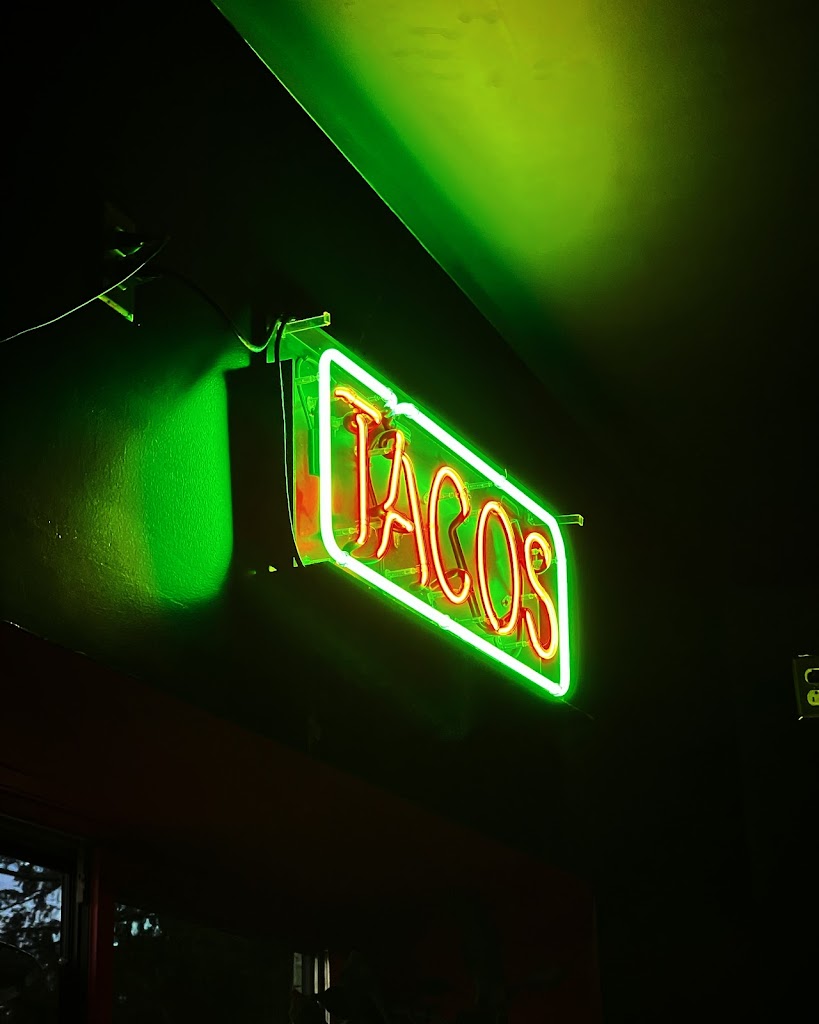 I didn t even need to eat the food Devo followed by psychedelic furs playing in the background was enough to start with. The tacos were really good and the service was spot on. Food came out of the kitchen fast and hot don t overlook the hot sauce/condiments bar.