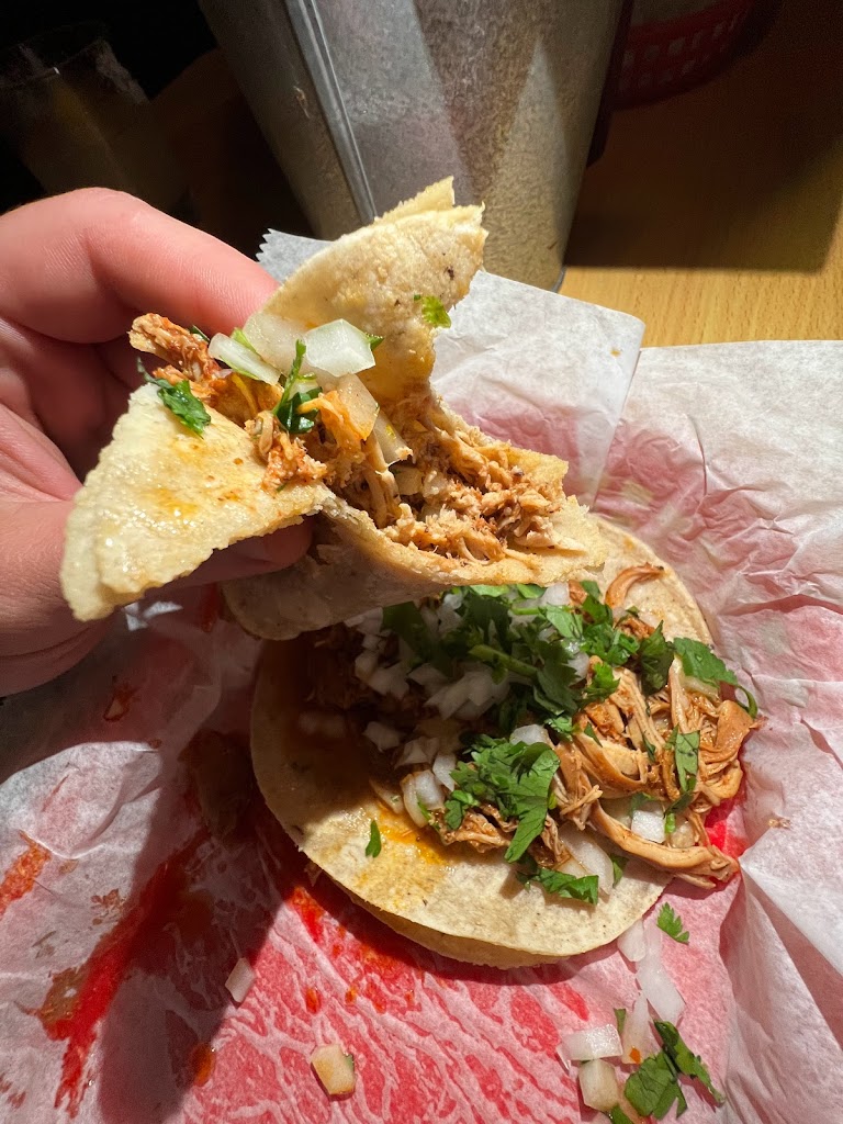 The tacos are really good. I had the carnitas and chicken tinga. Both were delicious. My only critique, which is going to sound weird, is they had too much meat In them. And it took away from the integrity of the taco. I didn t find them salty when I visited. And the salsa were very good too.