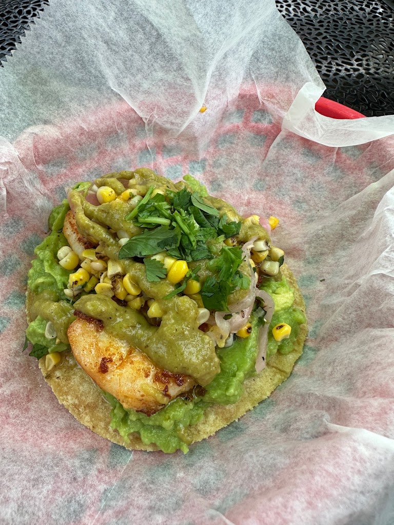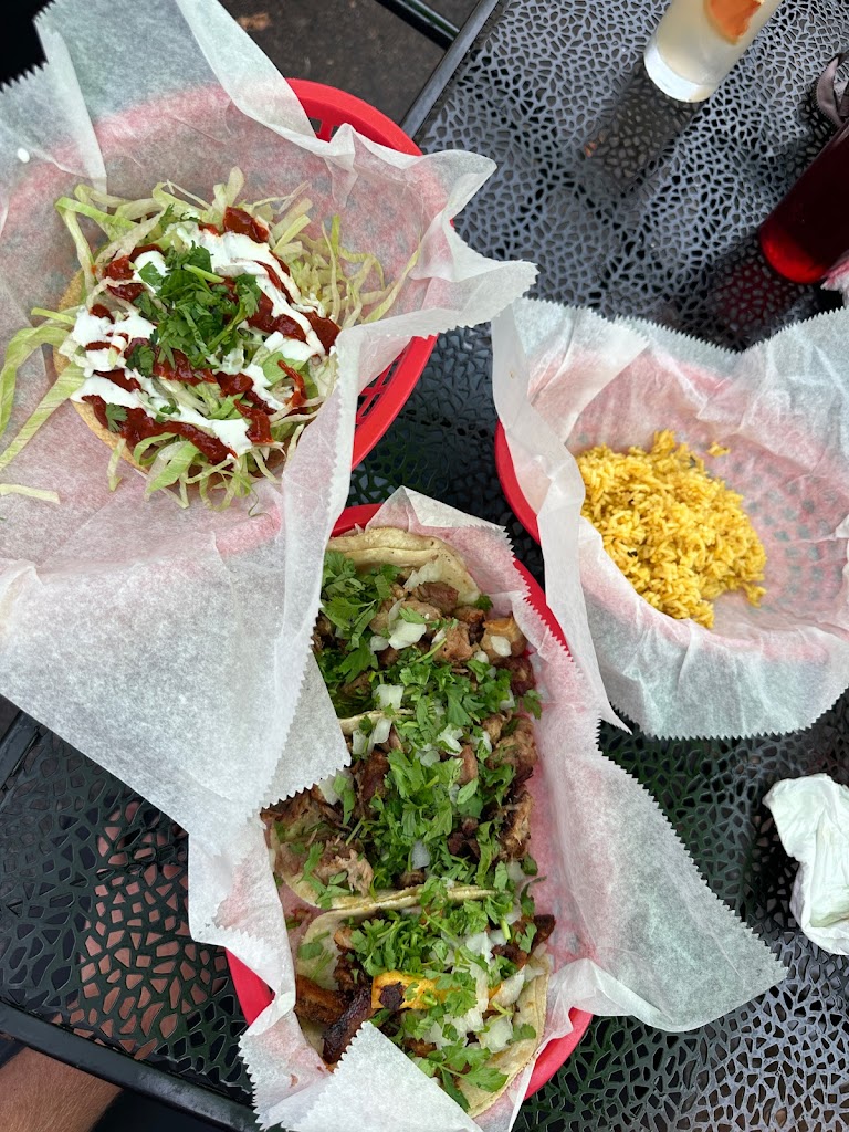 Immaculate vibes. The Al pastor was phenomenal. Nice crust on the pork, I’ve never had a crunch to my Al pastor before, it adds a wonderful flavor and texture. Guacostada was also very good. Elote was all right. This place is a can’t miss for sure.
