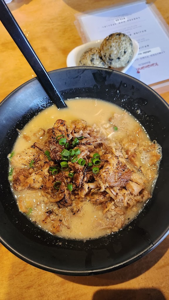 It s our third time here at this ramen place, and we are going to keep coming back cause we love it!! We love the bomb combo( rice ball) and their fired chicken, tofu are delicious too! I will recommend having rich broth and firm noodle, and for pork cooking style I personally enjoy slow cooked!! Ohh and they also have really nice Chase Don!! If you feel hungry after the ramen you can order one and give it a try