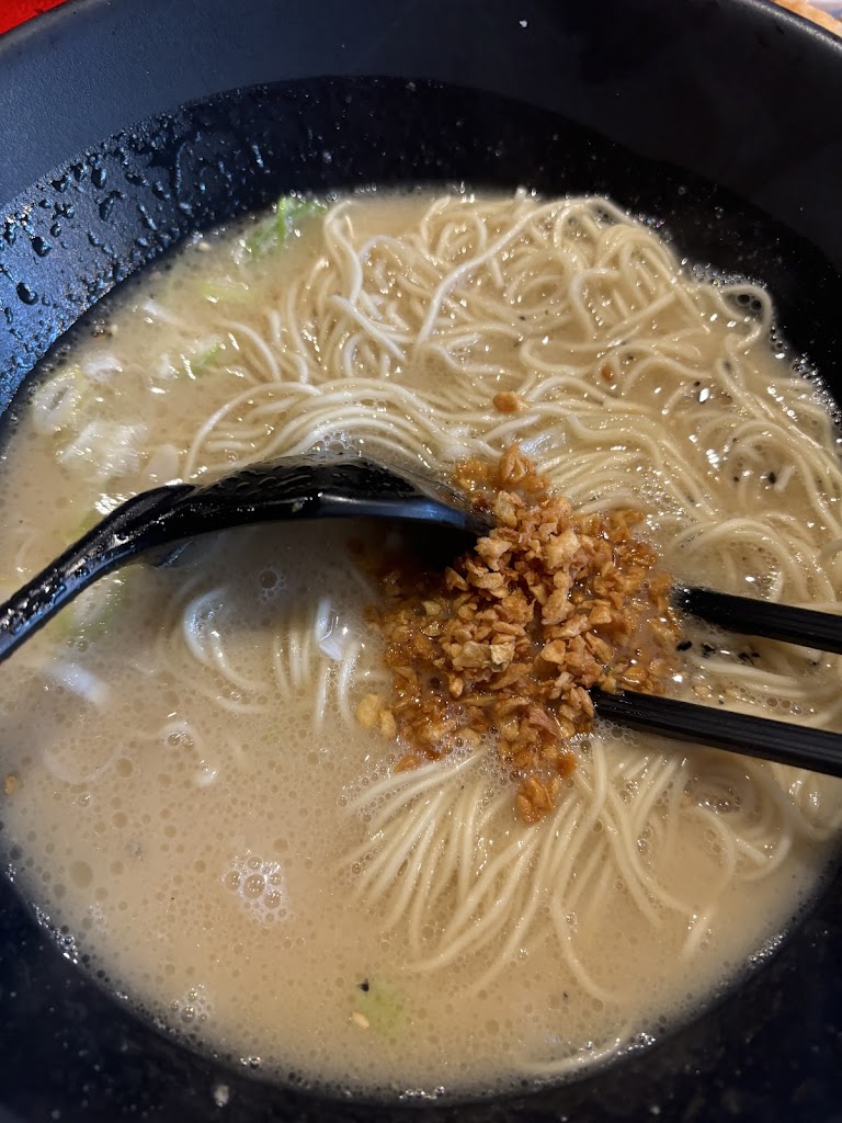 Rare Black Garlic Ramen with Decent Flavor Recently, I tried a rare black garlic ramen restaurant that would appeal to ramen enthusiasts. This place stands out for its unique use of black garlic as a seasoning, adding a distinctive flavor to the traditional ramen. If youre solely focused on the food itself, I recommend giving this black garlic ramen place a try. But dont expect too much from the service or the ambiance.