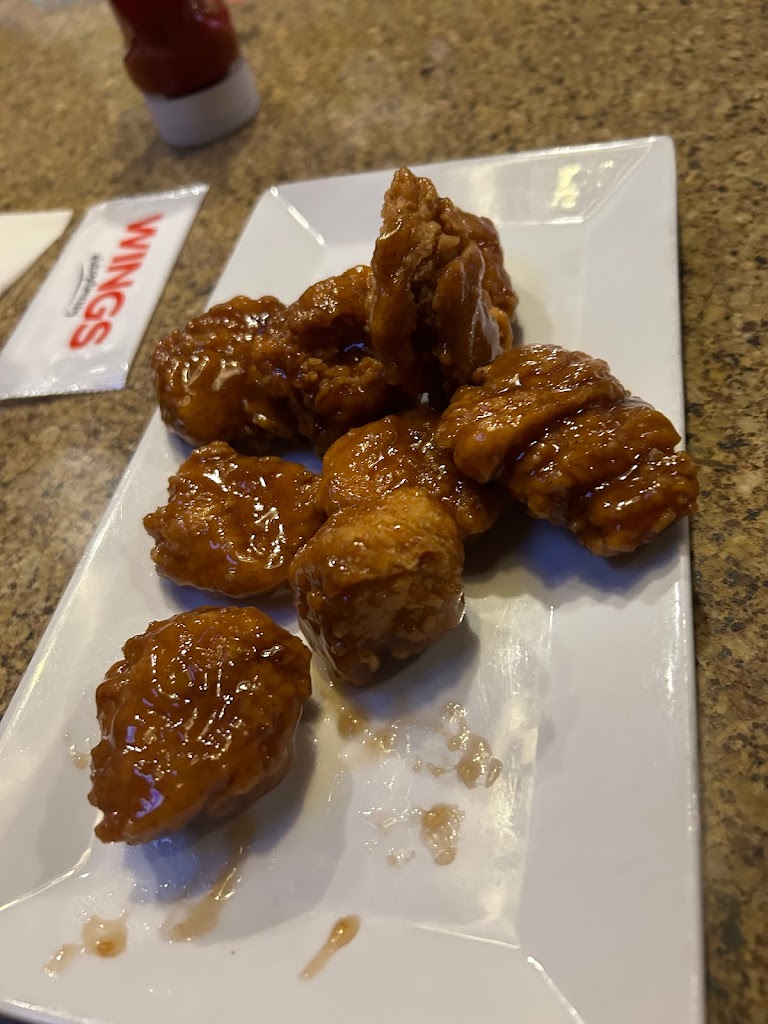 Always love wings at wings. Honey stinger boneless with ranch pretty good. Go on a Wednesday to get the drink and wing deal for 20ish dollars total (tax and tip) Parking: When its busy the parking lot can get full