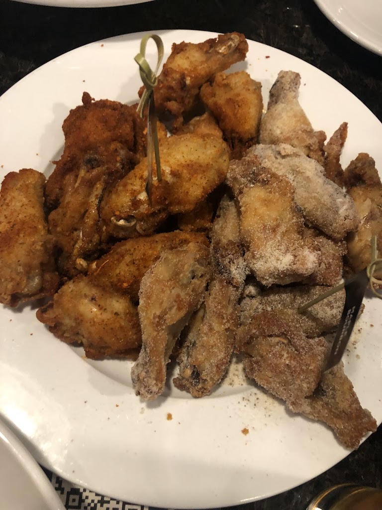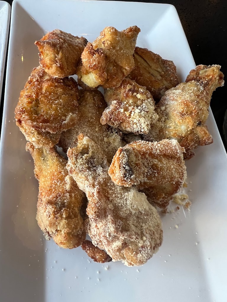 Overall, it was alright/kind of mid. Had a few different kinds of wings. The dry ones were overly seasoned especially with salt. The chicken wings and drumsticks were kind of small in size, length is comparable to my thumb or pinky, and quality is not the best. Honey garlic is always a safe choice. There was only one server when we went at noon. She did a great job serving all the tables and refilled our drinks without us asking which was appreciated. Other than service being what it should be, nothing stands out during our time here. Again, it was rather mid. Parking is available on site and on the street. Wouldn t really recommend going as I personally wouldn t go again.