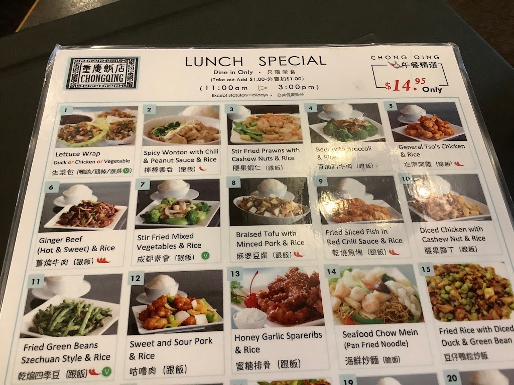 I have been going to a ChonqQuing location either in Vancouver or Burnaby for 25 years. Today I ordered the the ginger beef for lunch - it was the worst in all 25 years. It was like eating crispy pieces of leather - just horrible. I have had the dish many time and it is usually good. Not today! I notice there many pieces of crispy something, but not meat. Sadly I notice they arent as busy as the used to be - the kitchen maybe the reason