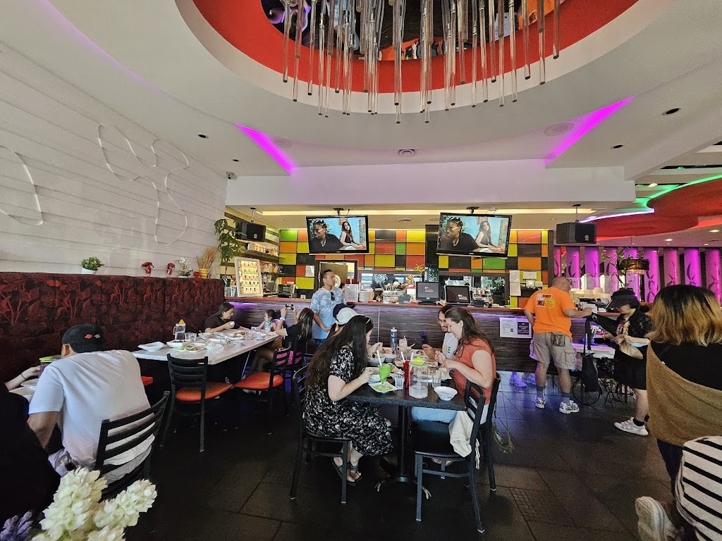 Good punctual service, not overbearing, not pandering for tips. Extremely large portion sizes whether in the form of a drink or plate for fair pricing. The food has never disappointed me in terms of flavour. It s delicious, I ve never had an upset stomach afterwards, and the only pain I would get would be from how stuffed I d be after eating here. Slushes here are fantastic and make your jaw drop with the sheer height of it, with them being around a foot and a half in length if I recall correctly. There are many options for boba/jellies/toppings, and an assortment of various flavours. The atmosphere is okay, not overly loud or distracting albeit I wouldnt call it cool or interesting decor. The menu has many options which can make decision-making difficult but as someone who likes variety it is still overall a plus. 5/5