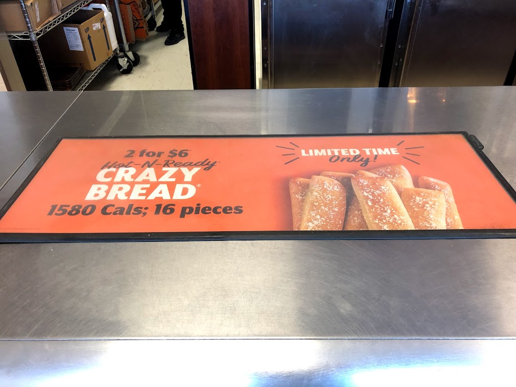 Crazy bread at this location is terrible. Its just dough. No flavour. I have gotten it several times thinking it would be better but its the same every time and tastes different than I have had at other locations