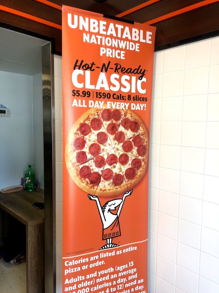 I’ll phone myself in the plaza and super hungry. I looked around to see if there was anywhere to eat and Little Caesars was staring me in the face! I walked in and the young man at the counter was super friendly and quick to take my order! I ordered the pepperoni walk in special. I almost didn’t have enough time to take all my pictures before he was ready to hand it to me. I don’t think I’ve ever experienced this type of speed in a pizza place! The restaurant itself is very clean and well placed in the plaza. It is a very new plaza so the parking lot has not fully been finished yet. As soon as I left, I opened up my pizza to take a slice. One of the most annoying things I experience when ordering a pizza is when they don’t cut the slices all the way. I picked up a slice and it was cut perfectly. Just as every other slice was. I didn’t have to tear any pizza apart or lose toppings because the cheese was stuck together. Well made pizza, hot, fresh and ready to devour! I will definitely be eating here again soon! Thank you guys