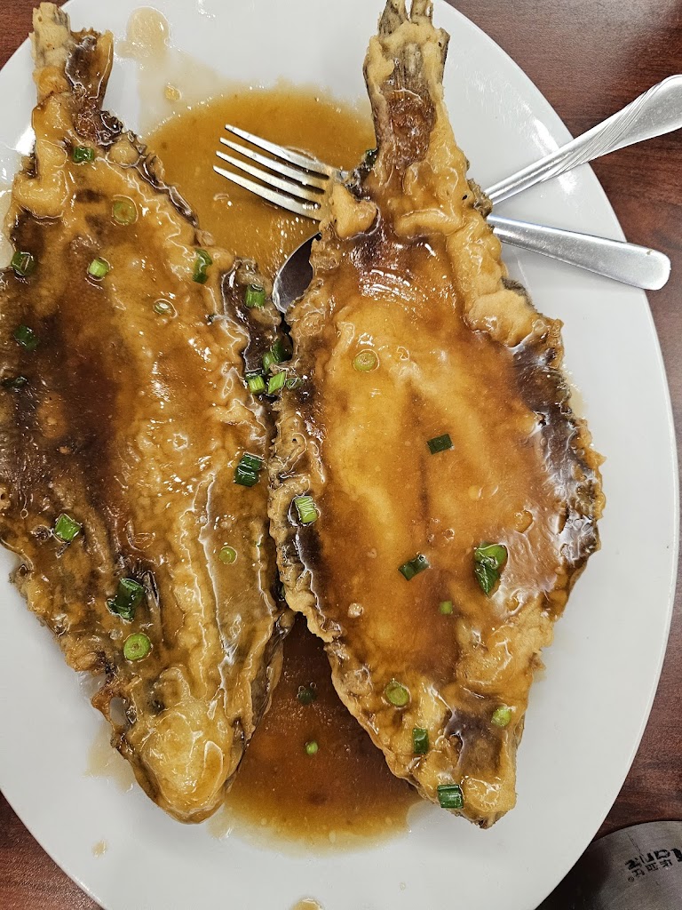 The salt and pepper squid here is AMAZING. Seriously the best. There are so many good dishes on the menu! The fish is so good, love that it s cooked in a way you can even eat the bones. There was this one dish that was a leafy veggie fried in butter and garlic and it was delicious! Baby bok choy maybe idk but I highly recommend!