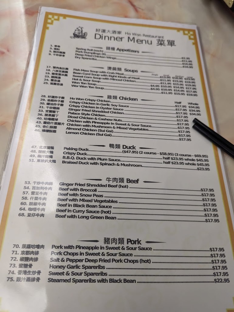 35 years I have been going to Ho Wons and I must say that it has always been the best, I have travelled all over and the food at Ho Wons is the best. My favorite place .