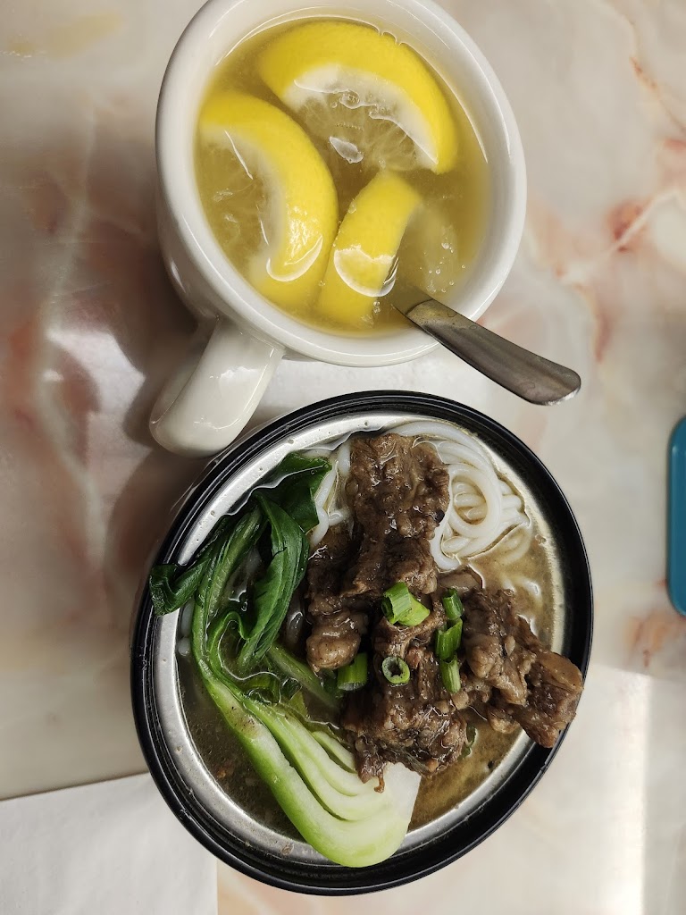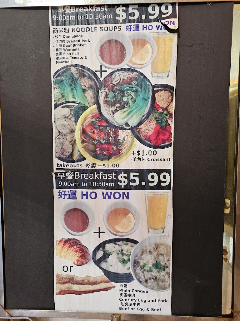 I went for breakfast. I had the beef brisket noodle soup + coffee for $5.99. Good value and great service.