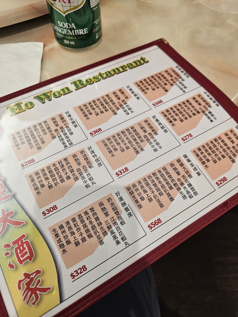 Very disappointed! I used to go to Ho Won quite often for their Salt&Pepper squid, but I m shocked to see that they still serve shark fin soup. That supports a horrible fishing practice and I cannot continue to patronize them.