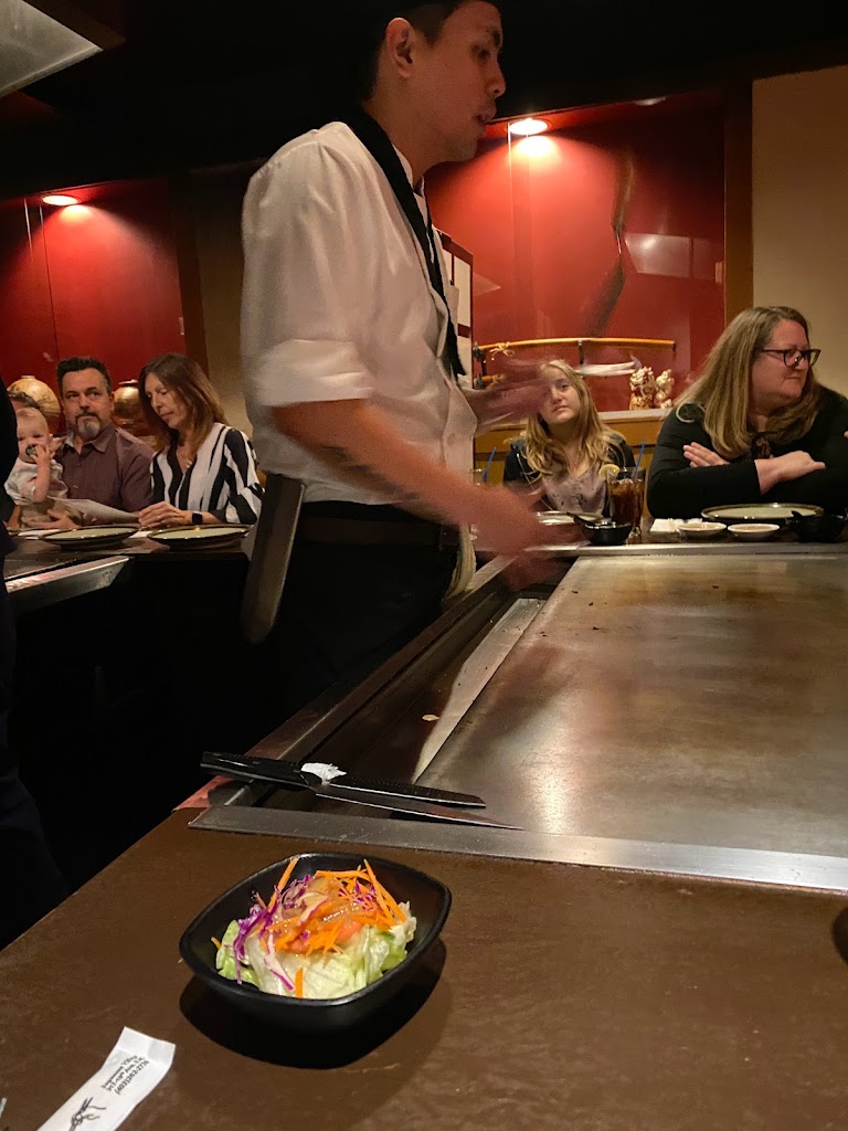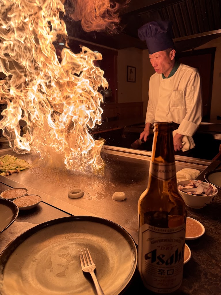 The chef always puts on a great show and the service is great. Steak was perfect.