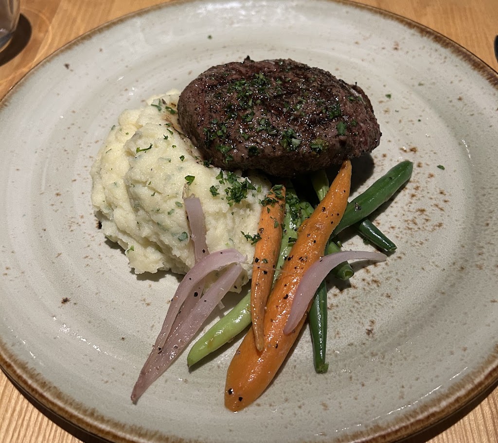 Had a great dinner on the patio and really enjoyed it. The Roasted Mushroom soup was a great starter. I was looking for plant-based meals and their selection was wonderful. The Teryaki Spice bowl (or something like that) with tofu was really good, flavorful and very filling. My smoking hot date had the Mediterranean Chicken and also found it good. Service was excellent and the patio was perfect for the evening. Dietary restrictions: Really good options of both vegetarian and plant-based meals.