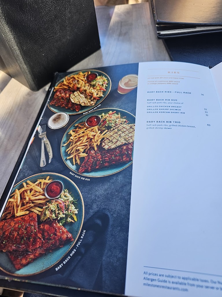 Milestones offers a great variety of dishes, and I really like it. There s something for everyone on the menu, making it a perfect choice for different tastes. The atmosphere is inviting, and the service is usually friendly and attentive.