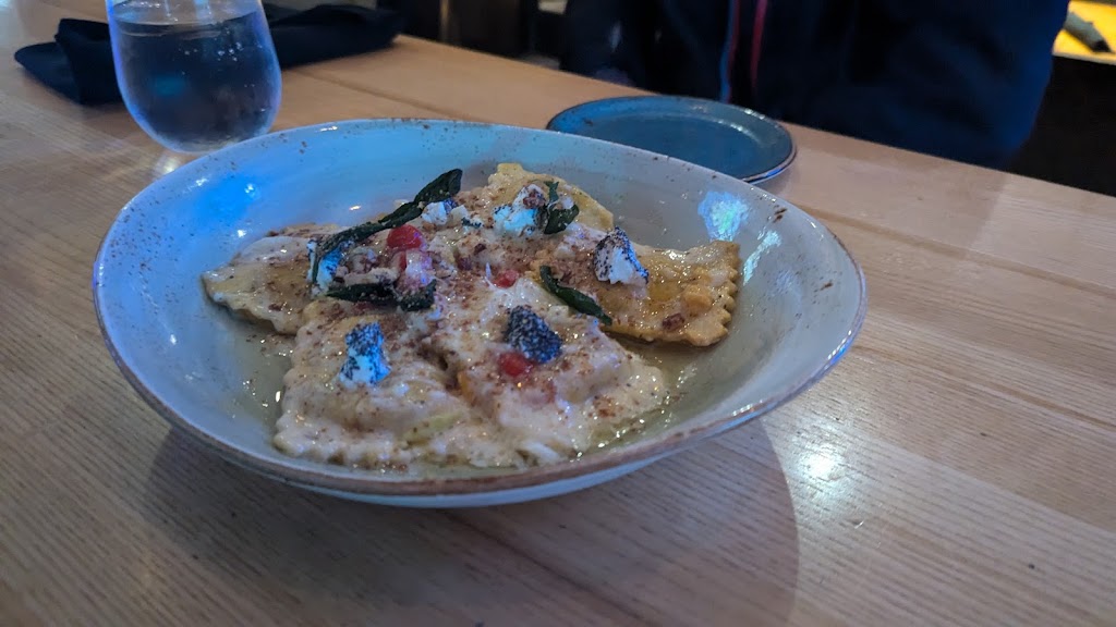 atmosphere was nice and servers were patient. roasted mushroom soup was very salty and i did not particularly enjoy it. sweet chilli chicken bites were delicious. butter squash ravioli was also very good.