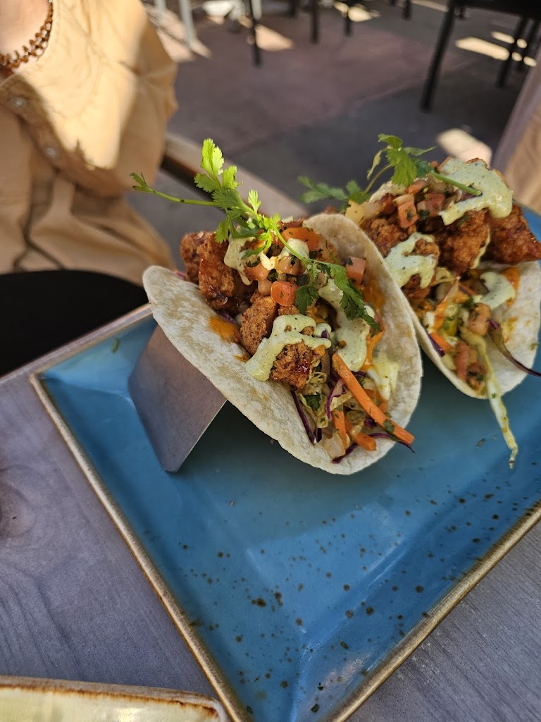 The best fish tacos I have ever had. We sat on the patio, great atmosphere, and genuinely friendly customer service.