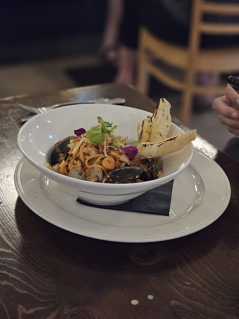 Thoroughly enjoyed our seafood meal in the vibrant marda loop location. Started with perfectly cooked scallops in a smooth saffron sauce. Our mains included pistachio crusted arctic char and seafood linguine - both were delicious. The lemon tart with lavender ice cream was perfect! Alyssa was an attentive and knowledgeable server - our only suggestion is that bread should be included w the scallop appy - rather than charging for it when requested.