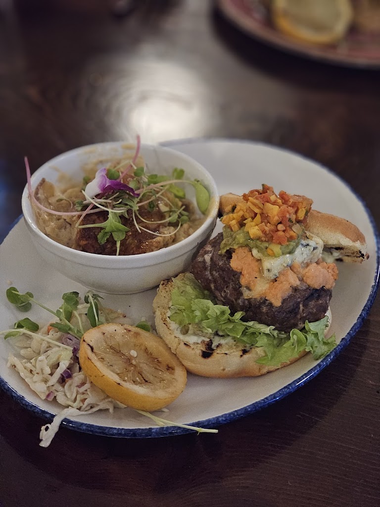 Wonderful service! I had the lamb and lobster Burger with fries and aioli it was amazing. We also had two dozen oysters and prosecco. A perfect afternoon! Parking: Free parking behind building.