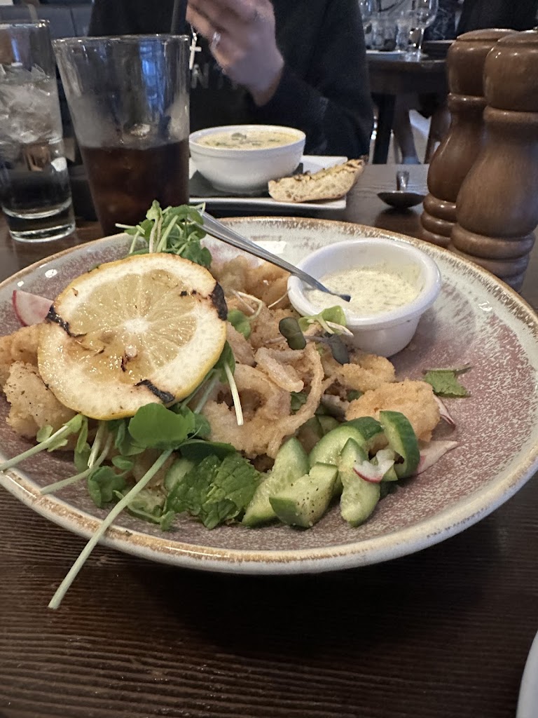 Was there last night for our friends birthday celebration. Shout out to our servers Andy and Jen - so kind and accommodating. The food was delicious!! As expected! Best seafood chowder soup ever and the calamari was bomb! Love them! Will definitely go back! Price was reasonable, also entree portions were big Vegetarian options: Definitely lots of options for vegetarian Parking: Parking in the back but limited. There s street parking too so it s fine