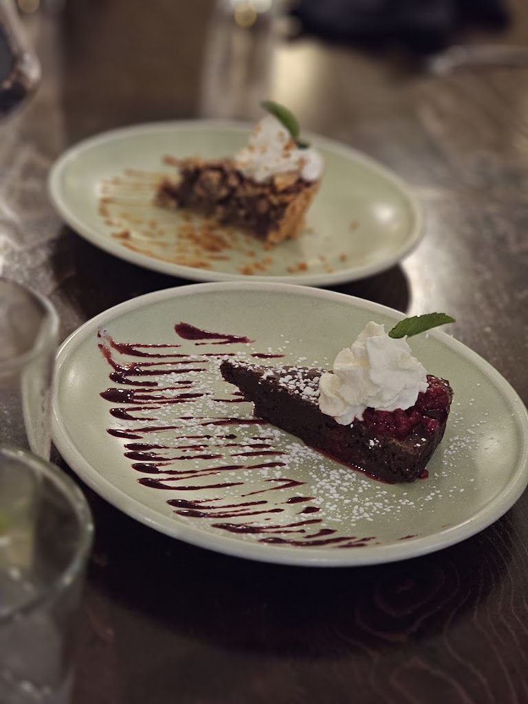 this was our first time here. had a reservation and came for oyster monday where you buy one get one free! ended up getting 2 dozen. they were good, i think the west oysters were better than the east imo - more taste to it! didn’t have a fishy taste or smell which i am sensitive to when it comes to oysters they also gave everyone this complimentary shrimp chip which was tasty next we had the mussels. they brought us extra bread at our request as we had 6 at the table - you can dip this in the soup! also ordered the peach italian soda. not sure it tasted like peaches, mostly tasted the lime which wasn’t bad i think that the appetizers and dessert were better than my main. i had the fish n chips. they were okay, but not enough coleslaw, tar tar sauce, and the fish n chips were quite hard in a way. side note the way they cut their lemon makes it impossible to squeeze it onto the fish? had to work to stab the chips with my fork! wish she would have given me the choice of a different side like yam fries or something! not the best i’ve had, and i order fish and chips at every restaurant if it’s on the menu as it’s my fave. i did expect more from a place that specializes in seafood. i wouldn’t order this again another at my table got the lamb and lobster burger and said they wouldn’t order it again, used the word “.. interesting” to describe it i will say that others did love their main, like the arctic char, feature pasta (linguini) dessert was the maple pecan pie with caramel, and the ganache torte. the torte was very strong, and i enjoyed the pie - tho i think it needed way more caramel than the tiny thin drizzle. food is quite pricy for portions, but if you get something you like it is worth it overall it was still pretty good, i’d be open to maybe trying again with a different main