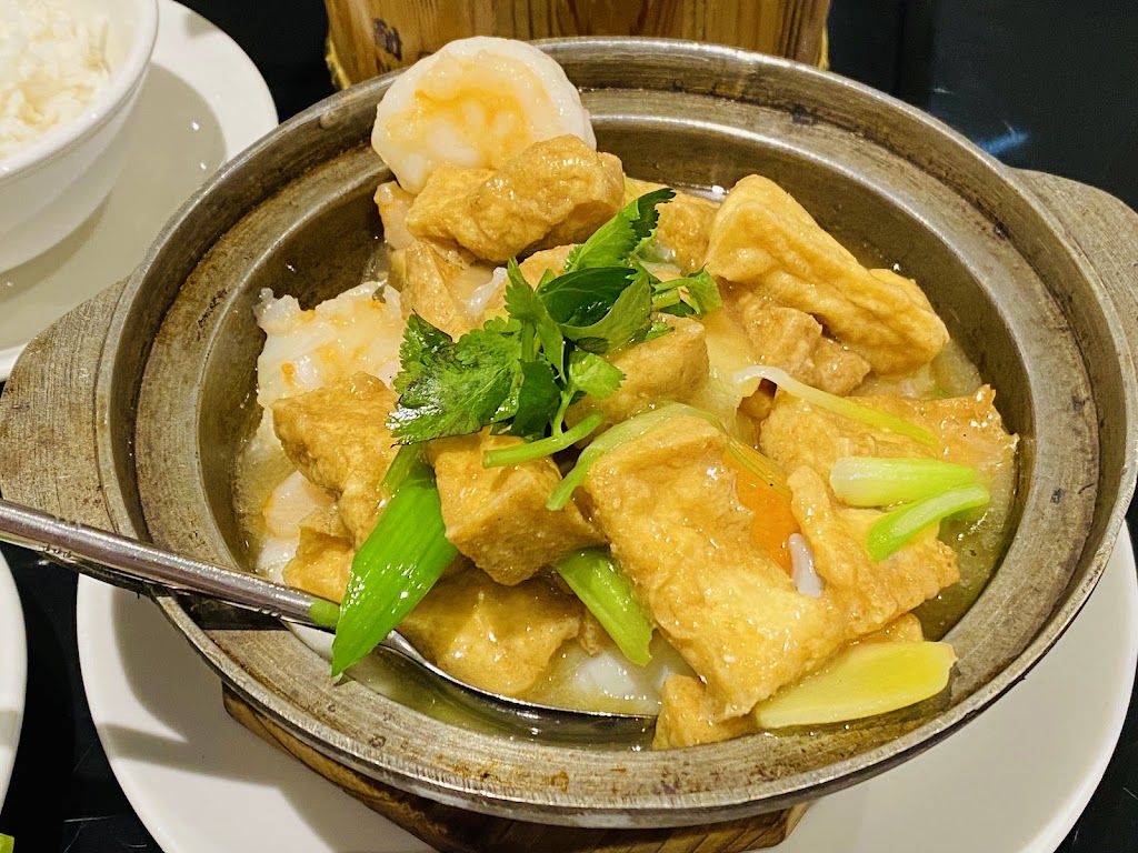 20240403 Heard good comments, ordered deliveries, still impressed by the food here. 雙拼:叉燒&脆皮豬肉 Char Siu is beautifully seasoned and colored and comes a good balance of tender lean meat and a little fat. Crispy pork belly is really crispy, without being too oily. There can be maybe a little more salt/pepper in comparison with the char siu, but tasty nonetheless. The sauce is delicious and not greasy at all. The cabbage at the bottom is wonderfully soaked in flavor. 蘿蔔糕 Turnip cakes are house-made and quite different from the common ones. There are much more turnip than flour. The flavor is also mellower. The texture is juicy, soft, melts in mouth. The shell has a crispy layer of potato starch. 蝦醬通菜 Morning glory with shrimp paste is amazing. The sauce is thick and generous, and it used ginger instead of garlic, which gives it a less pungent but warmer sensation. Not too much oil either. 海鮮豆腐煲 Seafood and tofu clay pot it’s not a salty, as it usually served in restaurants, which is good. The shrimp and scallop and squid, appear plump and fresh. The tofu is also nicely fried, but not drenched in oil. The only downside is there’s much more food and seafood so the recommended fish clip may be a more economic choice. The plates are small but the food are stacked tall. We emptied them all. (Accidentally rhymed XD (As far as I can remember from my covid era deliveries, their chow fun and noodles should be good too) The vibe is traditional/nostalgic. Food comes super fast. The staff are really friendly. And it’s nice to be able to look at the meat in the half open kitchen. The rice bucket is also cute. I would recommend this restaurant for some decent environment, hearty food, prompt service, and reasonable price.