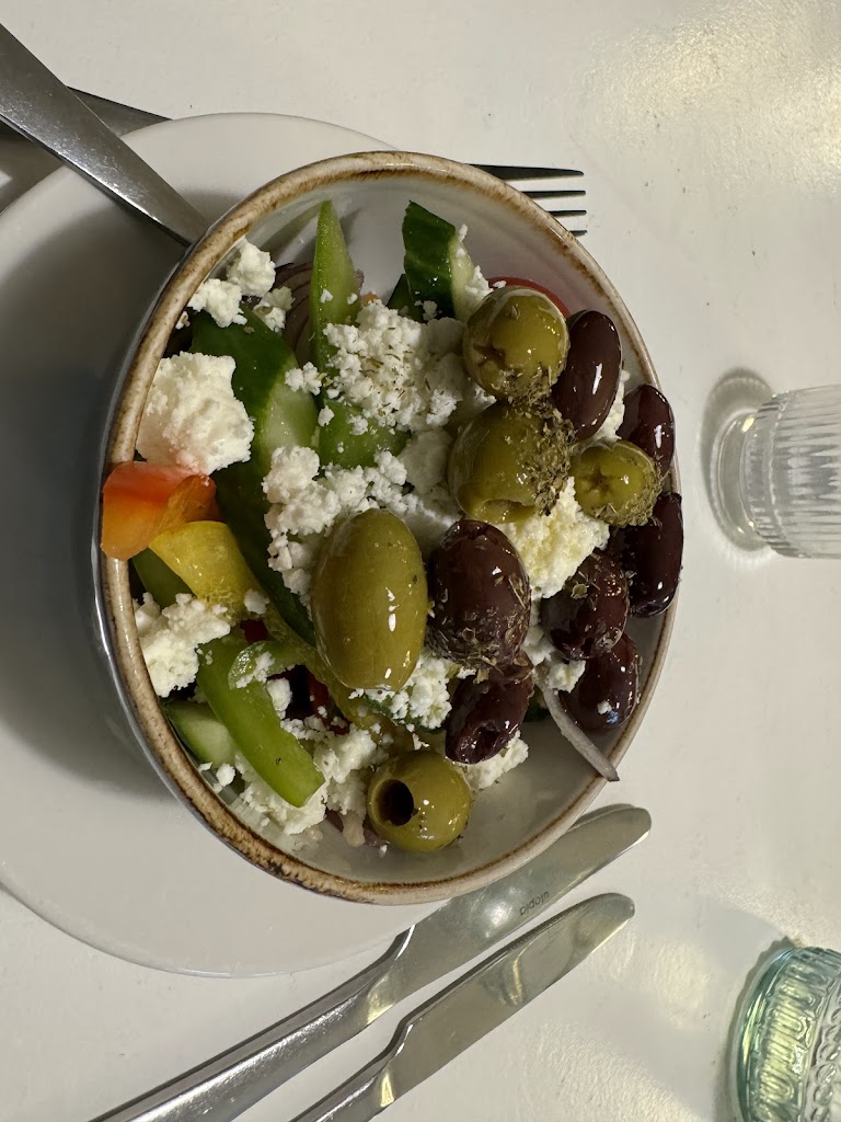 We ate tzatziki, melatzani, greek salad, octopus, garides saganaki and fried calamari. The appetizers were large portions and delicious, as a Turk accustomed to similar tastes from his own cuisine, everything was as expected. Salad and calamari were also above average, we liked them. The octopus seemed hard on the outside, but inside it was soft and tasted like it had been grilled. The saganaki was not what we are used to, there was less cheese, too much tomato sauce and I think the number of shrimps was less. The only disappointment was the ouzo. They dont serve bottled ouzo, you can only buy a glass. The first round of drinks was served in gin glasses, snow white and without water, with plenty of ice. In the second round, the service came in a whiskey glass. As someone who loves raki, the brother of ouzo, I would prefer ouzo served neat and in its own glass, with optional ice and water on the side. It is tradition in raki, raki never meets ice directly, it crystallizes, it is either drunk neat or cold water is added first and then ice is added. I also drank ouzo in a few places in Greece, my experience was different, but ultimately it is restaurant preference of course. Just a small note for those who will go and care about this detail :) Other than that, definitely recommended!! Dietary restrictions: There are notes regarding dietary restrictions next to each dish on the menu.