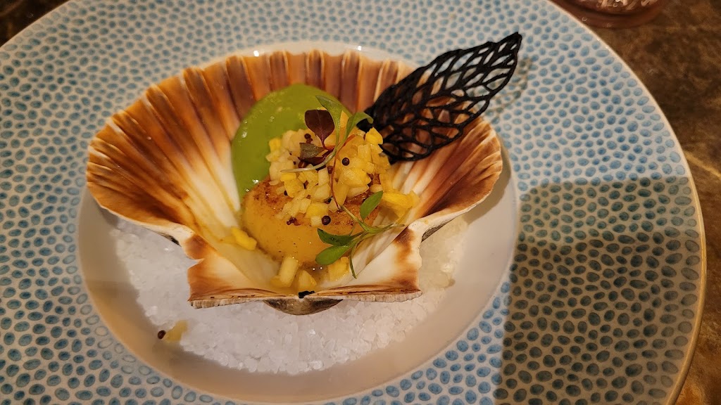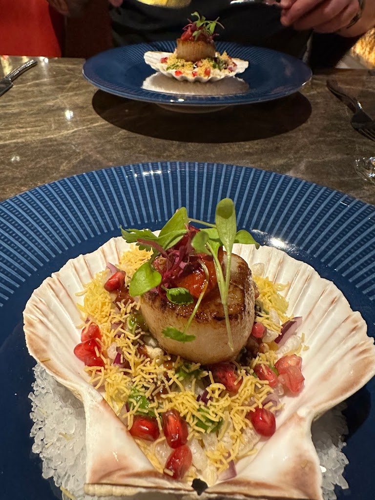 Navadanya is a Michelin recommended restaurant that offers an excellent dining experience. The food is top-notch, with the seared scallops with pickled mango served over a green pea purée being a standout dish. The portions are generous and will leave you feeling full and satisfied. The staff are friendly and create a relaxed and inviting atmosphere. I would highly recommend Navadanya for anyone looking to celebrate a special occasion or simply enjoy some delicious food.