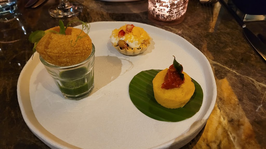 I am someone that has avoided seafood all my adult life.... Having recently taken myself out of a few comfort zones in my life I decided that seafood is something I should probably tackle.. lots of people told me I have missed out! So, Navadhanya was recommended as I enjoy spice and flavour. WOW WOW WOW! The recommendation was the best I have ever had! I was nervous but after my first bite I knew the Seafood taster menu was something I was going to enjoy! Dish after dish of pure heaven..... I was someone that didn't like the thought of eating seafood..... that's all I was! Because I LOVE seafood now! 7 courses of taste sensation. Every course was the right amount of everything. The waiter was so well versed in explaining the dishes and with so much enthusiasm and a delightful smile. Wine and water were topped up accordingly and staff were so very attentive. The food was cooked to perfection ( My partner is highly knowledgebable in food) and there wasn't anything that made me feel uncomfortable in any way. Beautiful, so very worth the money and I am now a seafood eater for sure!!