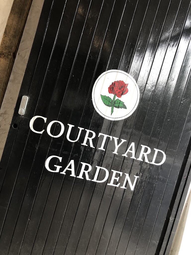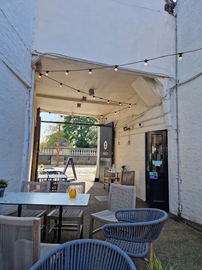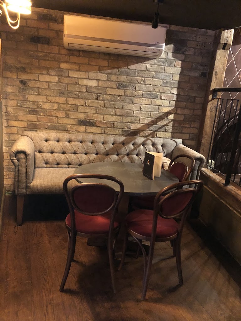 Lovely little small courtyard to sit outside and enjoy the English weather and get away from the hussle and bussle of the busy streets. Food looked nice although we didnt have any. We sat outside for some drinks and the staff were very pleasant, we would certainly pop in again. Inside was very nice and toilets well looked after