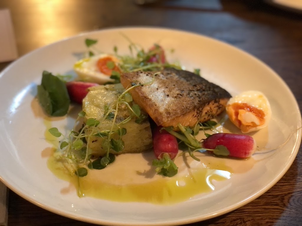 What can I say, but what an excellent meal, service and atmosphere. We went straight into mains and had the halibut. It was just simple, greatly cooked food. We didnt talk to each other whilst we ate it; just enjoyed the food. My wife is dairy free and they cooked the fish with different potatoes and sauce so she could have the dish. Too many restaurants just tell you what on the menu is dairy free. Here the chef was prepared to cook something different and equally good. Followed by dairy free chocolate mouse (far better than the ubiquitous sorbet!) and cheese and biscuits. A must visit restaurant. Well done to the team.