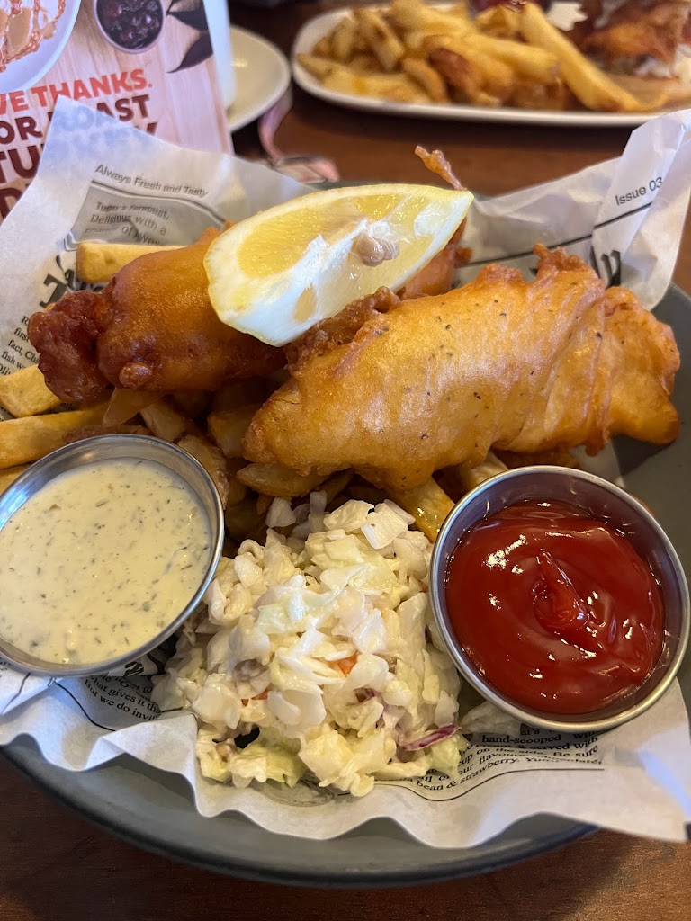 Celebrated my birthday at this wonderful restaurant and had their fish and chips. The serving size was impressively large and satisfying. The fish was cooked to perfection—crispy on the outside and tender on the inside. The chips were delicious as well. Overall, it's a great restaurant with generous portions and excellent food! Instagram : carlosanjelaaa