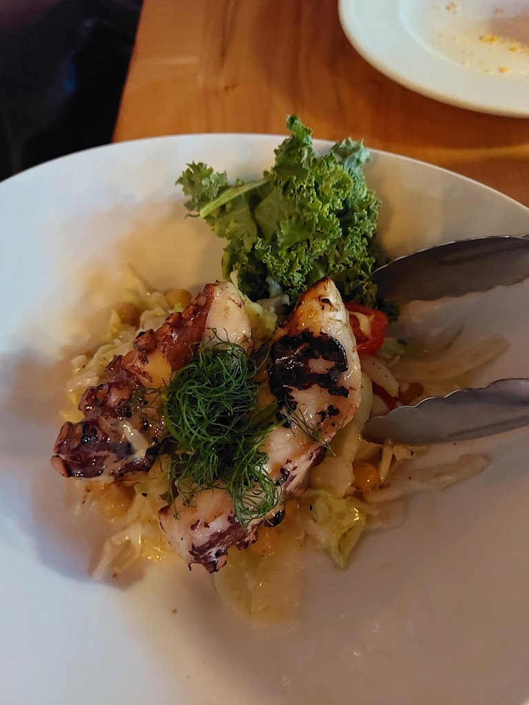 Get service. Nice atmosphere. Food good. Calamari little salty but overall meals were delicious