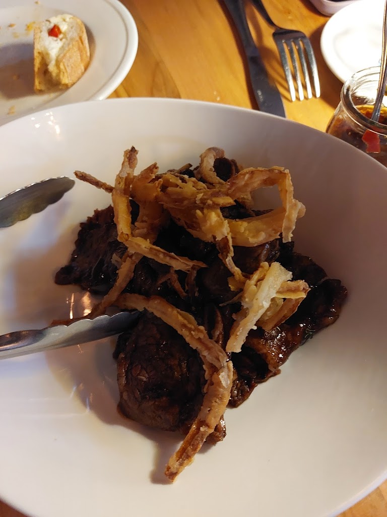 Had the short ribs (turned out to be miami ribs), ceaser salad, Gnocchi, Swalty pizza and found the pizza ans Gnocchi to be far too rich making it hard to finish. Short ribs were the star and Caesar is good. Atmosphere really nice and service average as had to ask for bread and waitress never asked how we are enjoying the meal