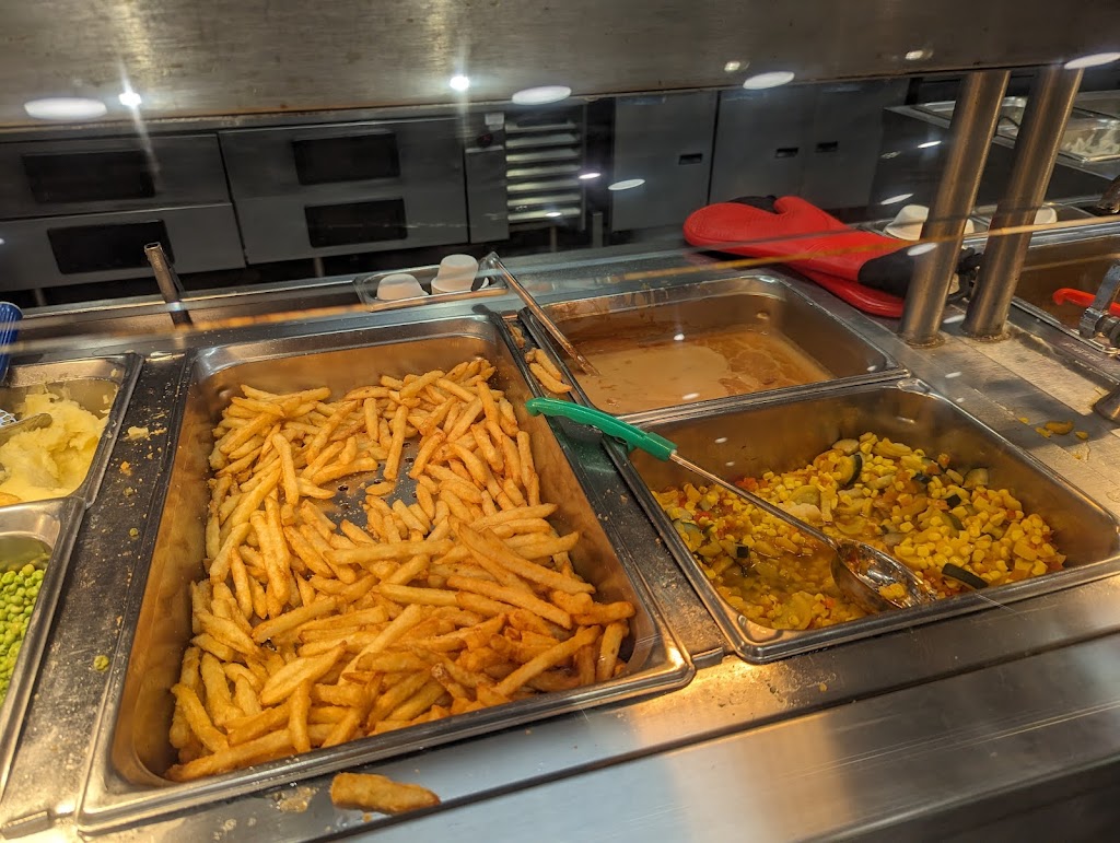 I went there on Wednesday night. There were so many utensils and cups that were a bit dirty, so I had to be selective. The poutine was prepared with cold fries, which made it inedible. The peas in the meatball combo dish tasted a bit lost their freshness. Additionally, the majority of tables were unclean, making my visit quite unpleasent.