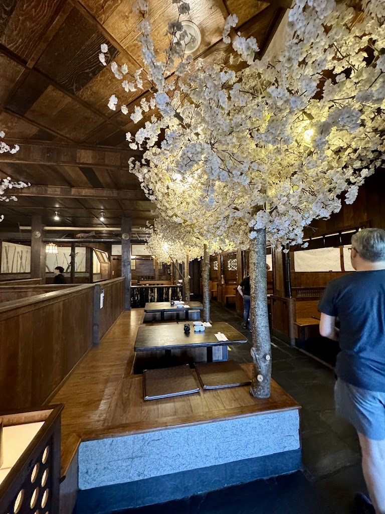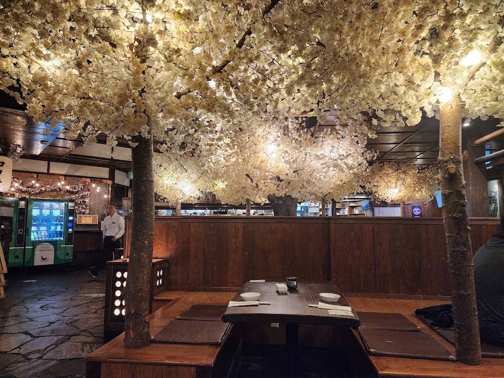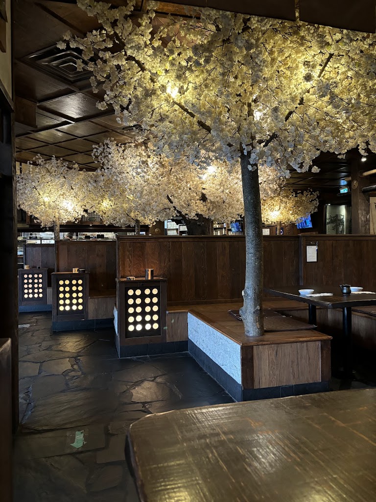 I’ve taken many guests to dine here and many are astounded by the cherry blossom trees inside the restaurant. The menu is very comprehensive and food quality and portions is pleasing for the price. Expect $20 to $30 per person but I think you will leave happy.